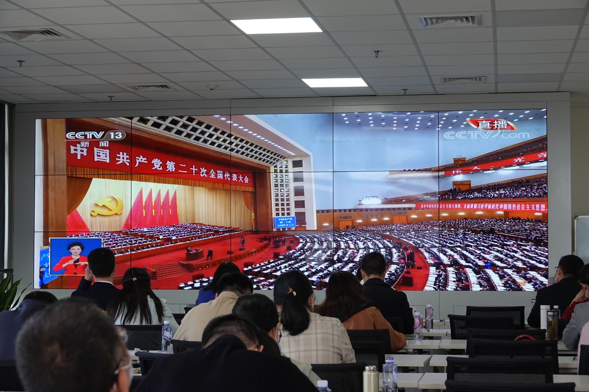 党委积极组织师生线下收看党的二十大开幕直播。由于疫情未能参加集中收看的部分师生也在家中通过手机、电视、电脑等方式收看党的二十大开幕直播盛况,认真聆听报告。