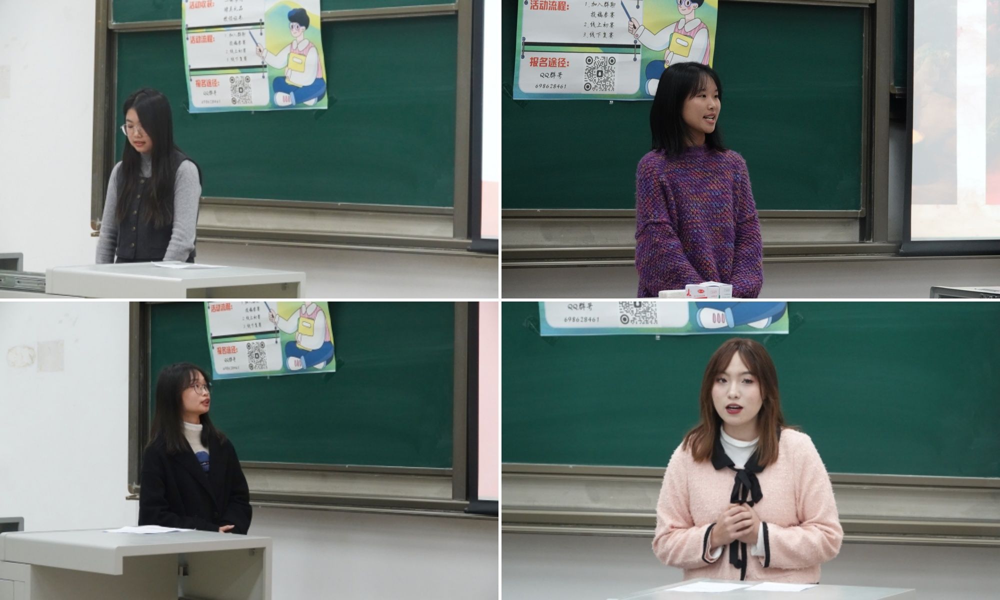 学生会承办的“追寻红色足迹,赓续红色血脉”红色教育基地讲解大赛在X1315举行。经过层层选拔后,共有10位选手进入决赛。本次比赛由孙嘉翼主持,辅导员杜晓林、高楠老师以及院学生会主席团成员刘泠希、戴一旸等同学担任评委。