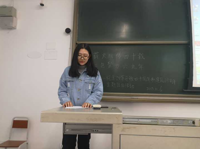 11月6日,澳门六合彩开奖现场直播 2018级团员在七号教学楼7301开展了庆祝改革开放四十周年主题团日活动。团日活动由2018-1团支部书记龚禹竹主持。