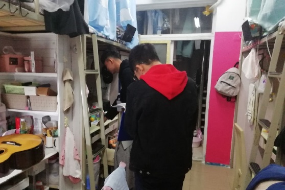 赵老师和学生干部们仔细检查了本科生宿舍的安全卫生状况,提醒大家继续注意宿舍安全,保持宿舍整洁。