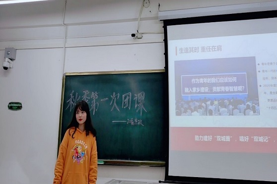 团员们纷纷表示“我为成渝代言”,共同为我们的家乡贡献自己的青春力量。 2020级第一堂团课在温馨而又充实的学习和交流中圆满结束。