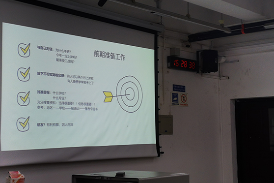 最后,王迎迎老师结合自己过去工作的经验,为同学们总结了往届同学们的考研历程以及经验,并叮嘱大家要早日找到自己未来的方向,朝着一个目标去努力,充实自己的大学生活。