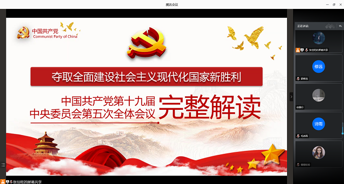 青春新征程,奋进十四五!马克思主义学生会全体成员于2020年12月17日19:00,通过线上会议的方式共同学习了党的十九届五中全会精神。