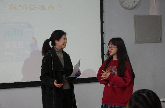 首先,彭老师向同学们提出“如果你准备考研或是有把握保研,你是否还会认真准备就业?”问题,持有“认真准备”和“不认真准备”观点的同学被分成两组上台进行非正式辩论,彭老师带领同学们一起分析这两种选择,使同学们明晰了这两种选择的优劣。彭老师建议同学们在准备考研或保研的同时也要认真准备就业。