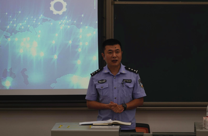 在犀浦2218开展防范电信网络诈骗讲座,讲座由校园路派出所陈柯君警官主讲,辅导员杜晓林老师和全体本科生、研究生共同参与,讲座由我院团委书记赵晨老师主持。