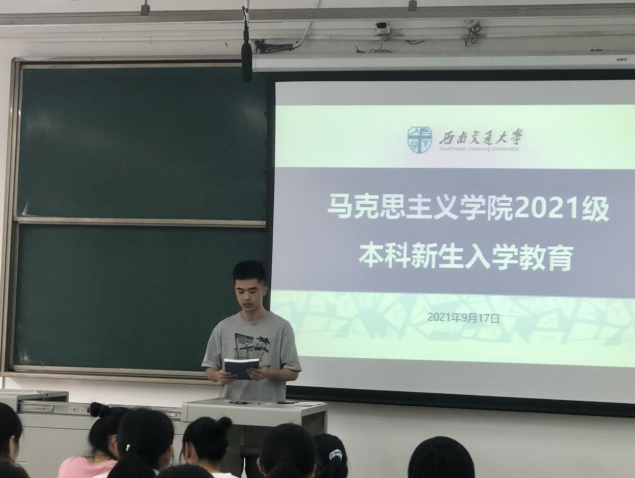 为使新生及时了解学生管理办法,更好适应新环境,9月17日,我院在X2223开展了2021级本科新生专题入学教育,本次入学教育由“新生适应”“奖助体系”“校园安全”三个专题组成,辅导员李浩以及2021级全体同学共同参加。入学教育过程中,李老师组织大家学习西南交通大学本科生相关管理规章制度,并重点从寝室安全、离校请销假、困难认定、奖助学金、勤工助学等方面为同学们详细讲解了学校的规章制度和管理办法。最后,李老师提出同学们刚从熟悉的环境到达较为陌生的环境,希望同学们能够尽快地转变角色,适应新生活,熟悉新环境,遇到困难及时与老师沟通。