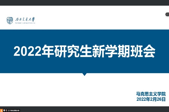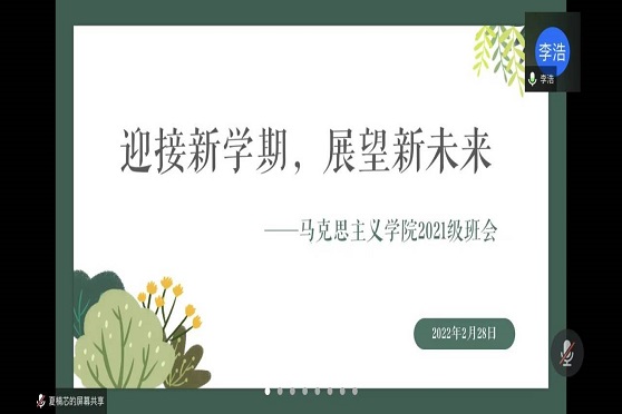 2021级本科生主题班会于线上开展,班会由辅导员李浩老师、班导师景星维老师主持。在本次班会中,辅导员李浩老师着重进行了安全教育,再次为同学们讲解了《西南交通大学学生公寓管理办法》,强调同学们要注意用电安全,不使用和存放违章电器,不乱牵电线;不饲养宠物;不存放违禁物品……严格遵守学校学生公寓管理办法。在这之后,李老师带领同学们再次熟悉了学校的最新疫情防控要求,叮嘱同学们遵守疫情防控规定,做好个人防护。紧接着,班导师景星维老师对新学期各学习科目的特点及学习方法进行了讲授,强调无论是专业课还是公共课,同学们都应认真对待,努力提升自己,实现自我,超越自我!