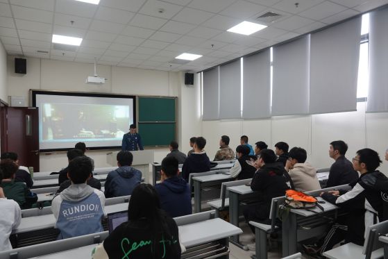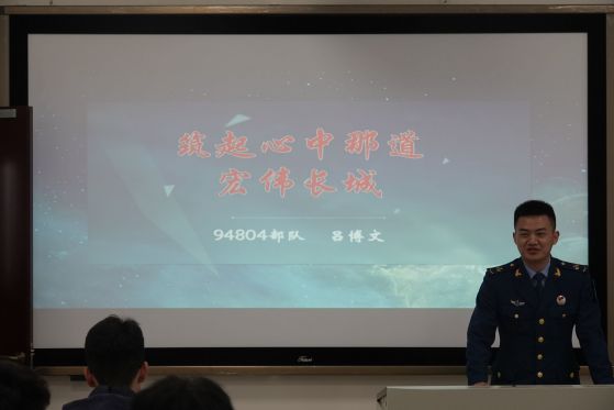 就读的2019级本科生吕博文从单位简介、部队形势、军人待遇、时代责任和初心使命五个方面进行讲解,并用前辈们的英勇事迹激励大家要坚定理想信念、牢记初心使命,鼓励大家勇于尝试、挑战自我,让英雄的精神融入血脉,青年的未来值得期待!