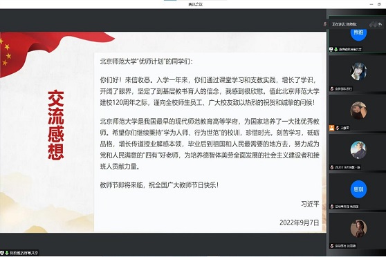 学生会召开线上专题学习会,组织同学们学习习近平总书记给北师大“优师计划”师范生的回信。本次专题学习会由学生会组织部部长陈煦雅主持,澳门六合彩开奖现场直播