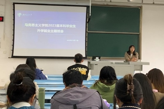 2022年10月11日10:00分,2019级本科生升学就业班会于X2533顺利开展。班会由辅导员杜晓林老师和班导师杨桓老师主持,全体同学参与。