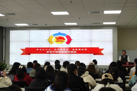 接着,廖凡老师详细阐述担任学生干部对个人未来成长的深远影响。时代需要学生干部,“青年强,则国家强。当代中国青年生逢其时,施展才干的舞台无比广阔,实现梦想的前景无比光明。”作为新时代高校学生,我们应积极响应党的号召,在担任学生干部的同时成长为有理想、敢担当、能吃苦、肯奋斗的时代新人,不负青春,不负韶华。