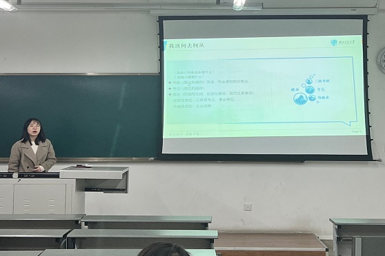 2021级本科生全体成员参加。班会中,杜老师主要通过“了解自己”和“了解外部世界”两个部分为同学们做生涯规划参考。首先,在“了解自己”板块,杜老师从职业兴趣、职业能力、个人特质、职业价值观、胜任能力五个方面,教会同学们如何进行自我分析,从而增进对自我的认识。其次,在“了解外部世界”板块,杜老师从升学和就业两个方面为同学们指明奋斗的方向。最后,杜老师以“大学生活该怎样度过?”做总结,希望各位同学度过充实无悔的大学生活。同学们纷纷表示,自己定会找准未来的奋斗方向,争做新青年,用实际行动践行二十大精神。