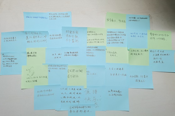 最后,主持人对此次活动进行总结,强调了心理健康的重要性以及网络暴力对于个人心理健康与社会群体的危害性,呼吁大家保持心理健康,树立积极向上的心理健康观念。在活动最后,主持人邀请同学们在便利贴上写下电影的观后感悟和相关心理健康知识,并组织同学们在签退后有序离场。