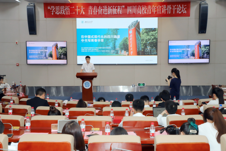 为深入学习宣传贯彻习近平新时代中国特色社会主义思想和党的二十大精神,进一步促进四川高校青年宣讲骨干联学联动,充分发挥青年大学生在理论宣讲中的先锋作用,凝聚起磅礴奋进的青春力量,2023年4月17日下午,“学思践悟二十大 青春奋进新征程”四川高校青年宣讲骨干论坛在西南财经大学隆重举行。会议由西南财经大学主办,西南财经大学党委副书记、副校长李永强,党委宣传部、学生工作部、校团委、澳门六合彩开奖现场直播