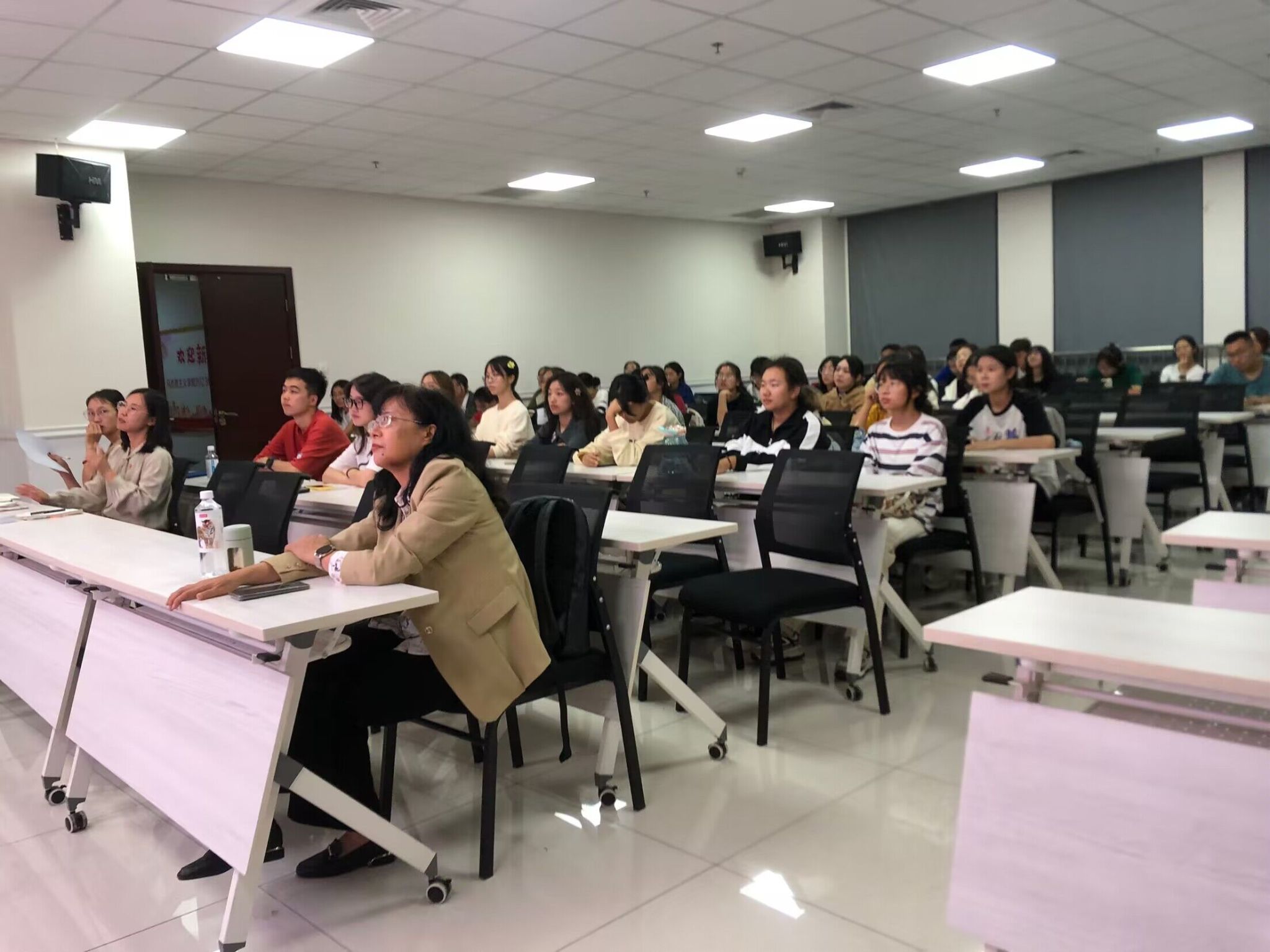执行院长田永秀教授、班导师孟浩老师、辅导员杜晓林、高楠老师以及2023级全体新生参会,班会由高楠老师主持。