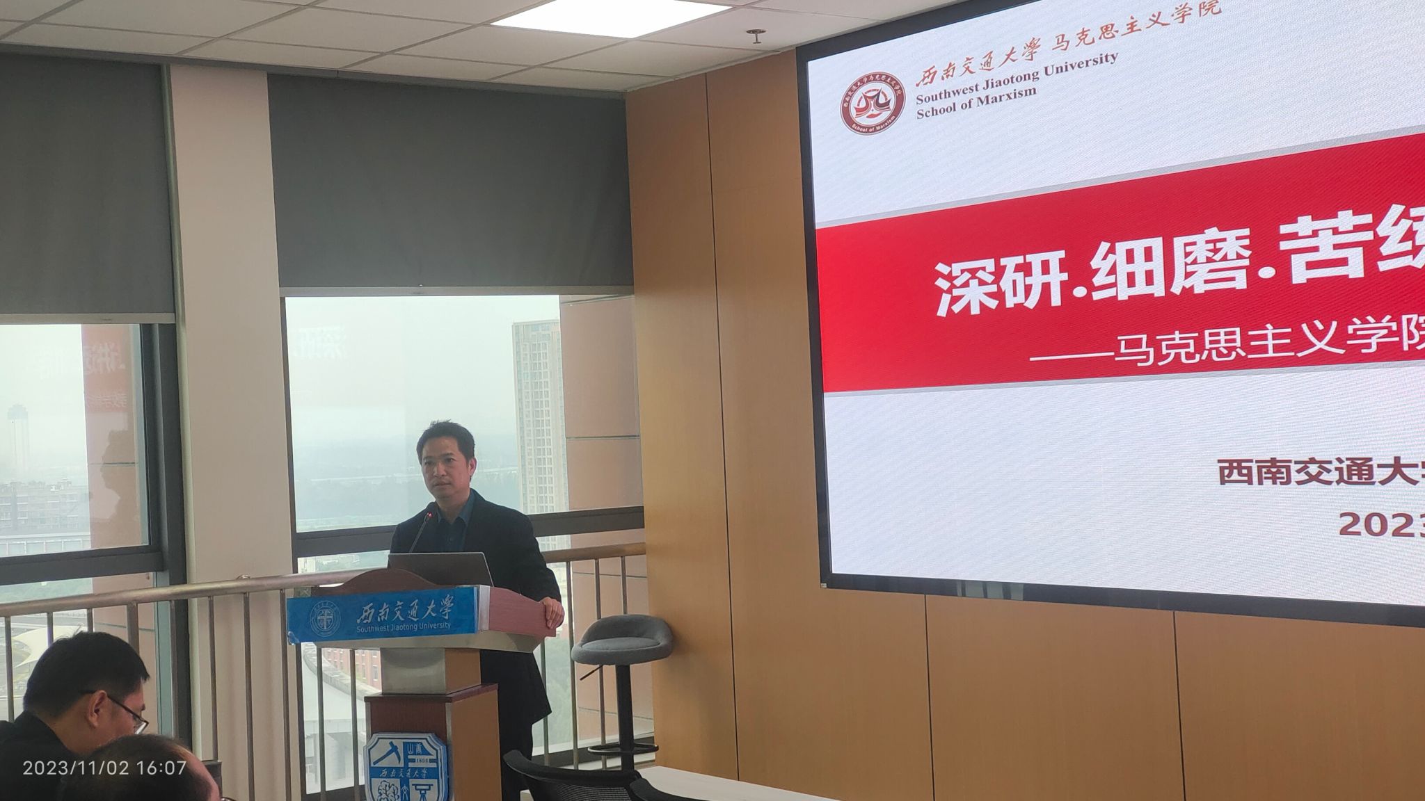 在交流研讨环节,李学勇副院长结合2023年四川省高校思政课“精彩一课”的赛况分析,就找准方位,明晰目标,用“真心、潜心、匠心”提升教学能力,进行了感悟分享。他指出,思政课教学要在“四个回归”,即回归讲课、回归课程、回归教材、回归理论中,把准课程定位,读懂弄通教材,深悟原理理论,推动教学转化,不仅要讲好一堂课,更要讲好一门课。提升教学能力要在“六个着力”上下功夫,即把准学情上着力,以求精准;教学设计上着力,体现匠心;夯实理论功底上着力,力求透彻;占有素材上着力,力求鲜活;加强互动上着力,打破沉默;话语修炼上着力,力求亲和。