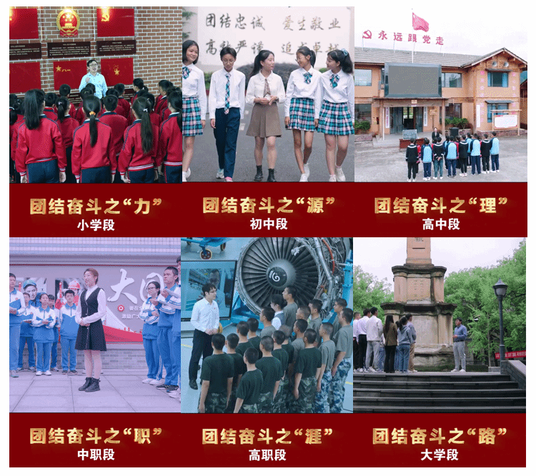 ,系统谋划、精心设计、精细打造,制作了小学、初中、高中、中职、高职专科、本科6个学段同题异构的思政课一体化精品教学资源——“同题异构:团结奋斗”教学资源。该教学资源,围绕“团结奋斗”主题,按照普通教育、职业教育两线并进,差异化推进的逻辑进路设计教学。普教线,设计为小学段:团结奋斗之“力”——启蒙情感,初中段:团结奋斗之“源”——打牢思想基础,高中段:团结奋斗之“理”——提升政治素养,大学段:团结奋斗之“路”——增强使命担当;职教线,设计为中职段:团结奋斗之“职”——提升政治素养,高职段:团结奋斗之“涯”——增强使命担当。既遵循了循序渐进,螺旋上升,全链条育人的一体化规律;又实现了普通教育和职业教育精准育人、分类发展。该教学资源,把一体化建设和教学改革创新深度融合,贴近学生、贴近生活、贴近实际,因“段”制宜、因地制宜、因校制宜,探索了“活动中的思政”“场馆里的思政课”“田野上的思政课”“实训室里的思政课”“轨道上的思政课”等多种新颖的教学方式,增强了课程的亲和力、吸引力、感染力,提升了学生的教学获得感。