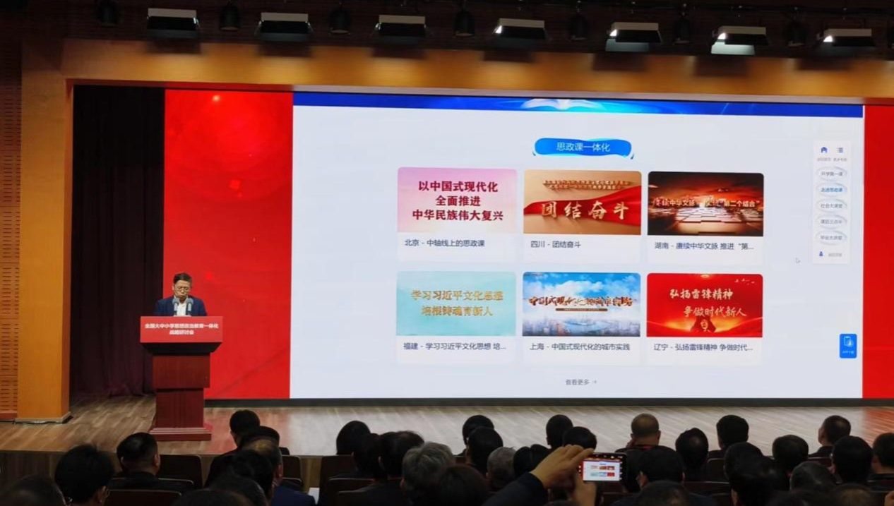 2023年11月27日,由教育部主办的全国大中小学思想政治教育一体化战略研讨会在上海召开,教育部党组成员、副部长翁铁慧出席并讲话,上海市委副书记吴清,上海交通大学党委书记杨振斌,国家文物局党组成员、副局长罗文利出席并致辞,中宣部、教育部有关负责同志,全国各地的专家学者300余人参加会议。大会上,教育部发布了全国首批10套思政课一体化示范教学资源,并推荐上线国家智慧教育平台。由学校牵头打造的“同题异构:团结奋斗”思政课一体化教学资源脱颖而出、成功入选,并受到了教育部大中小学思政课一体化建设指导委员会多名专家的赞誉和好评。