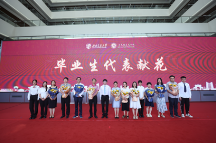 临别之际,感念师恩。毕业生代表还特别准备了鲜花,向辛勤付出、教导引导他们的老师献上最诚挚的感谢和敬意,表达了对老师们的深深感激和尊重。