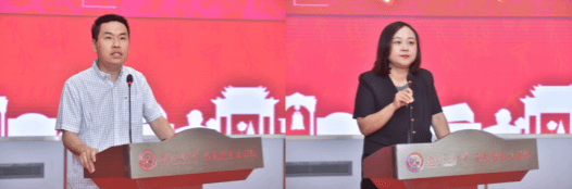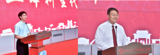 教师代表熊昊和导师代表刁成林上台发言。首先,熊昊为2024届毕业生送上了热烈的祝贺,他鼓励毕业生们将毕业视为新的人生起点,坚持拼搏精神,积极面对挑战,并将大学的美好回忆与品质带入未来。他期待毕业生们能够常回母校,重温青春记忆。刁成林则回顾了自己的求学生涯,强调了对学生的指导是学术、就业及人生观的全面指导。她寄语毕业生们保持对世界的好奇心,不断探索新知识,同时也要有信心和勇气面对未来的困难。两位教师的发言充满了对毕业生的祝福和期待,也激励他们在未来的道路上不断前行。