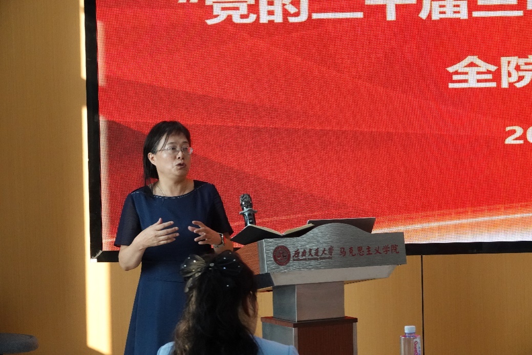 王菁副院长结合学习贯彻党的二十届三中全会精神深化教学研究,作了国社科思政课专项申报动员。勉励全院教师共同努力,把教学和科研深度融合,把握科研发展规律,有计划地开展科研,在新时代中展现新气象,体现新作为。