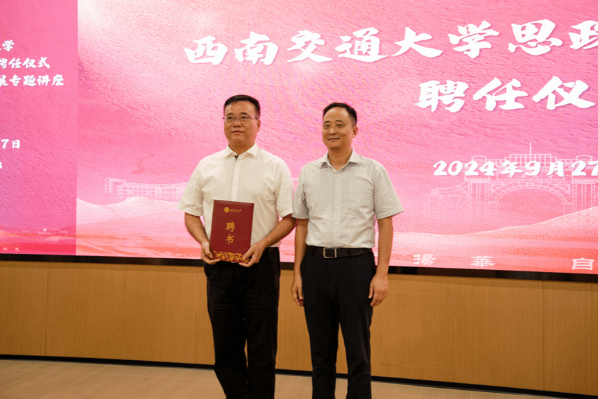在犀浦校区图书馆一号报告厅举办西南交通大学思政课特聘教授聘任仪式暨大学生学习与发展专题讲座。学校党委副书记高平平,中共成都市郫都区教育工委书记、郫都区教育局党组书记、局长韩海东,学校澳门六合彩开奖现场直播