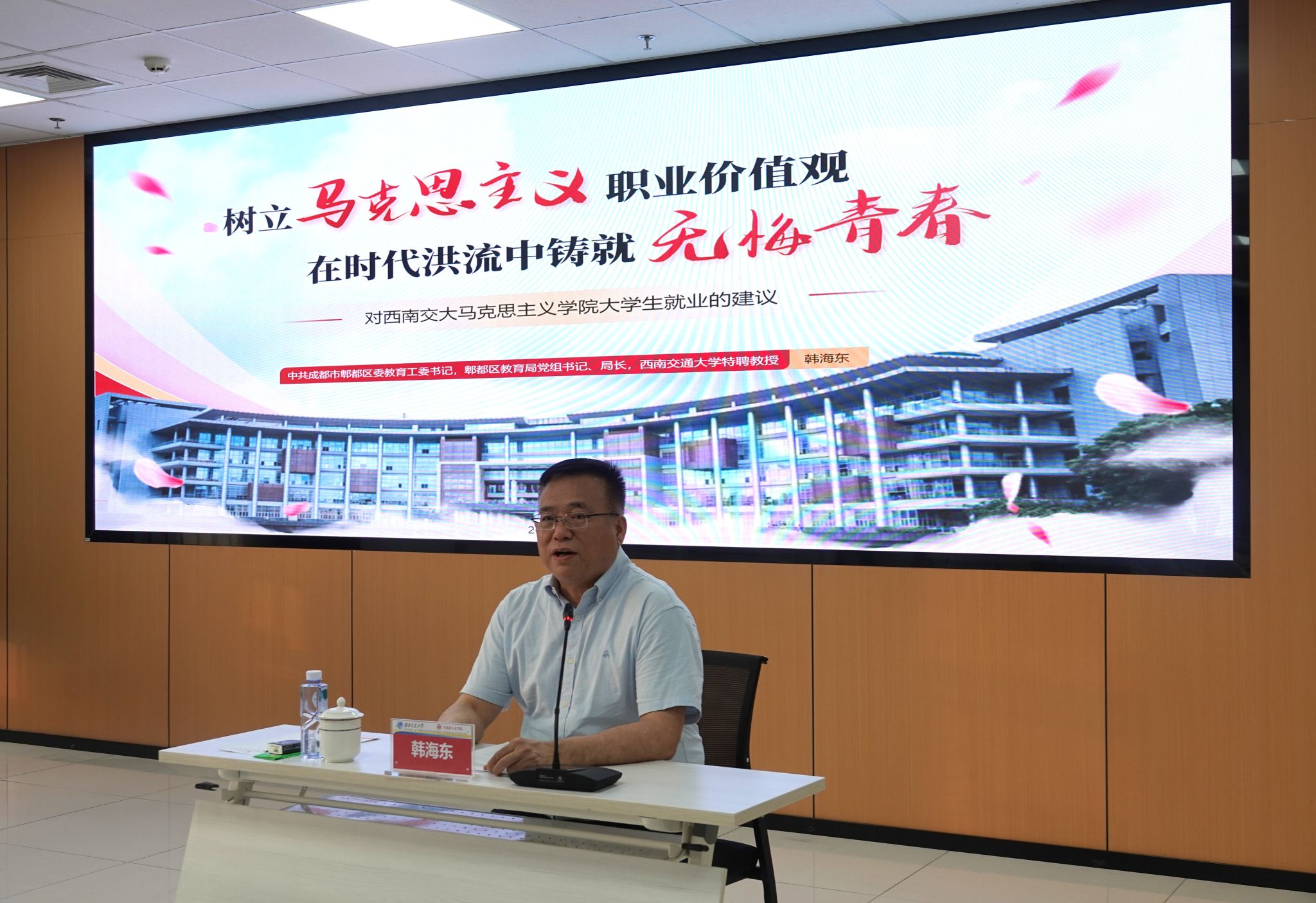 举办“树立马克思主义职业价值观,在时代洪流中铸就无悔青春”就业指导专题讲座。本次讲座特邀中共成都市郫都区委教育工委书记,郫都区教育局党组书记、局长,西南交通大学思政课特聘教授韩海东亲临现场,为澳门六合彩开奖现场直播