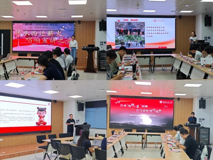 筑梦宣讲团社长鲍雨欣以“传承西迁薪火,奏响宣讲之音”为主题,介绍了宣讲团的基本情况及运行模式,强调了宣讲团在传播红色文化、传承西迁精神中的重要作用。随后,筑梦宣讲团成员张笑涵与“理响红途”理论宣讲团成员刘瑞、蒋乐潇进行了精彩的示范宣讲。