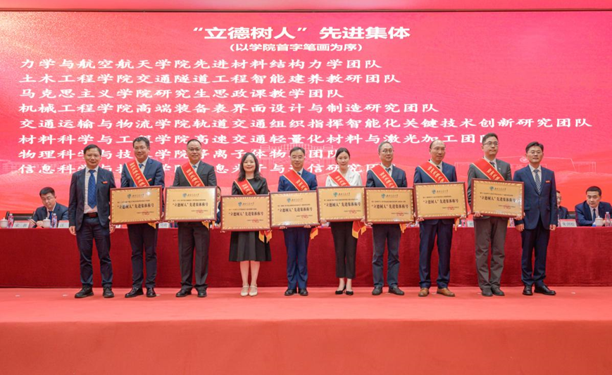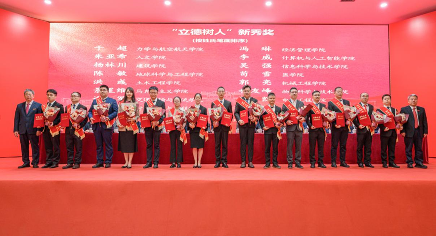 研究生思政课教学团队荣获“‘立德树人’先进集体”称号、李学勇老师荣获 “‘立德树人’标兵奖”称号、景星维老师荣获“‘立德树人’新秀奖”称号、胡子祥老师被授予“思国奖”。庆祝大会上,胡子祥作为“思国奖”获奖教师代表发言。他谈到,作为土生土长的交大人,深感师恩、团队和组织培育之恩,未来定将这份“交大之爱”传递给学生,让思政课有温度、育人有力量。