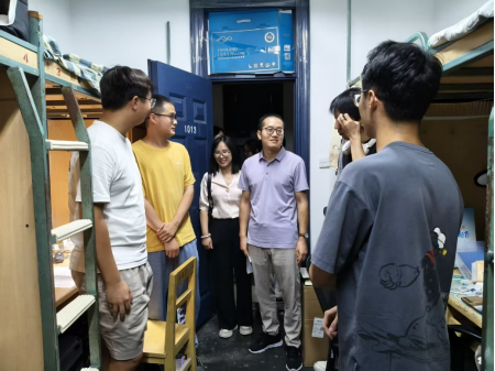 党委书记廖军,党委副书记、学生工作组组长邓秀芸和辅导员、班导师分别走访了研究生和本科生宿舍,关心慰问新生,了解同学们入校后的适应情况。