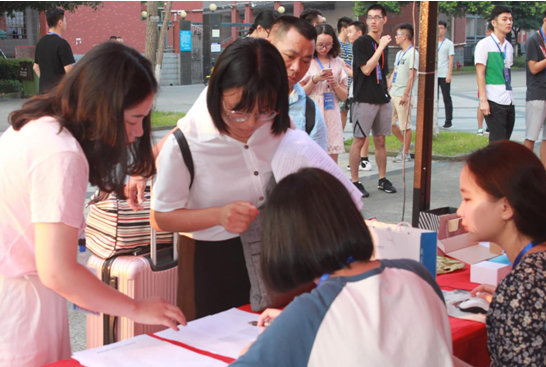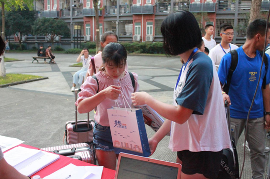 在迎新过程中,志愿者们认真地为新生填写表格、录入信息,细心地给他们讲解宿舍路线、校园环境,还有更为热心的志愿者带领新生到达宿舍,一路帮助他们拿行李、搬东西。新生初到校园,心中的陌生感被迎新志愿者们热情的态度、温暖的问候所化解。