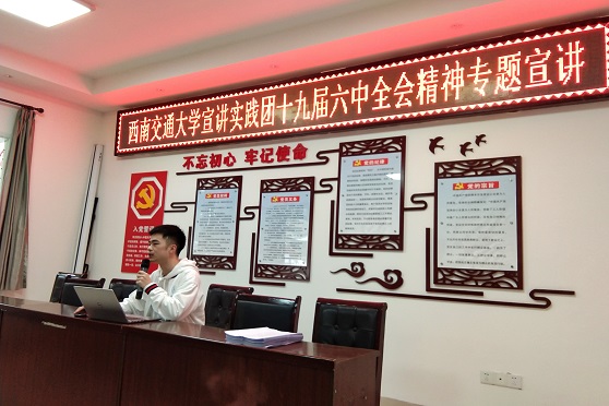 为深入学习宣传党的十九届六中全会精神,深刻理解中国共产党百年奋斗的历史意义,在实践中更好学习党史、新中国史、改革开放史、社会主义发展史,我校“青马工程”精英人才班组织宣讲实践队于202219日至12日赴四川省自贡市沿滩区富全镇、大安区凉高山街道开展理论宣讲,我院研究生李浩作为实践队队长参与其中。