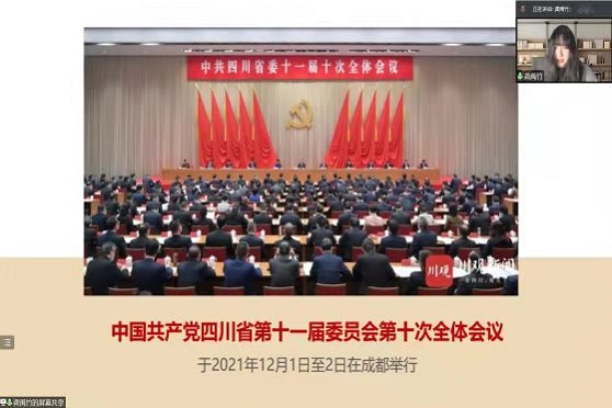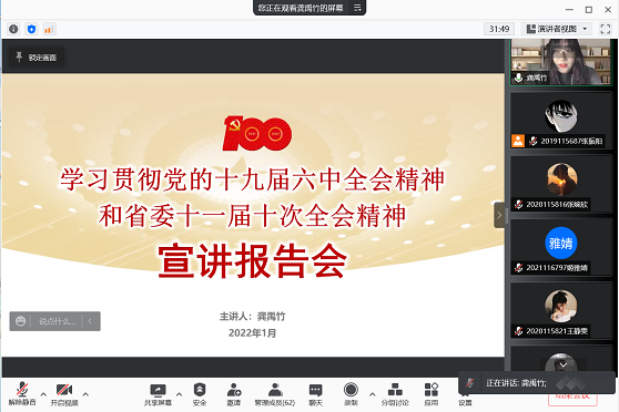 1月13日19:00,为深入学习贯彻党的十九届六中全会精神和省委十一届十次全会精神,校团委副书记(学生兼职)、成都市委宣讲团第二十一分团成员龚禹竹通过腾讯会议线上开展以“学习贯彻党的十九届六中全会精神和省委十一届十次全会精神”为主题的宣讲报告会。本次宣讲由澳门六合彩开奖现场直播