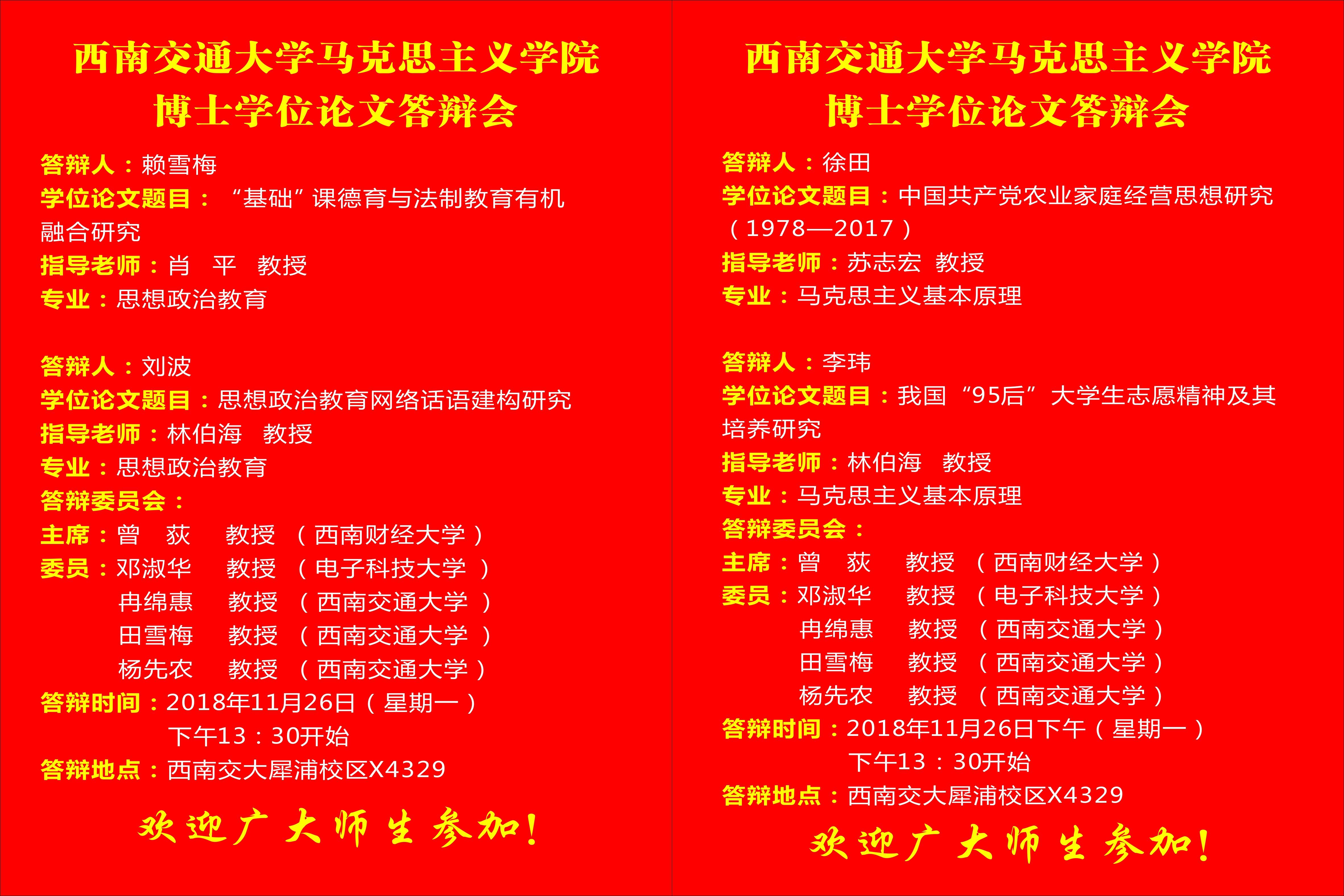 2018年11月博士论文答辩工作安排