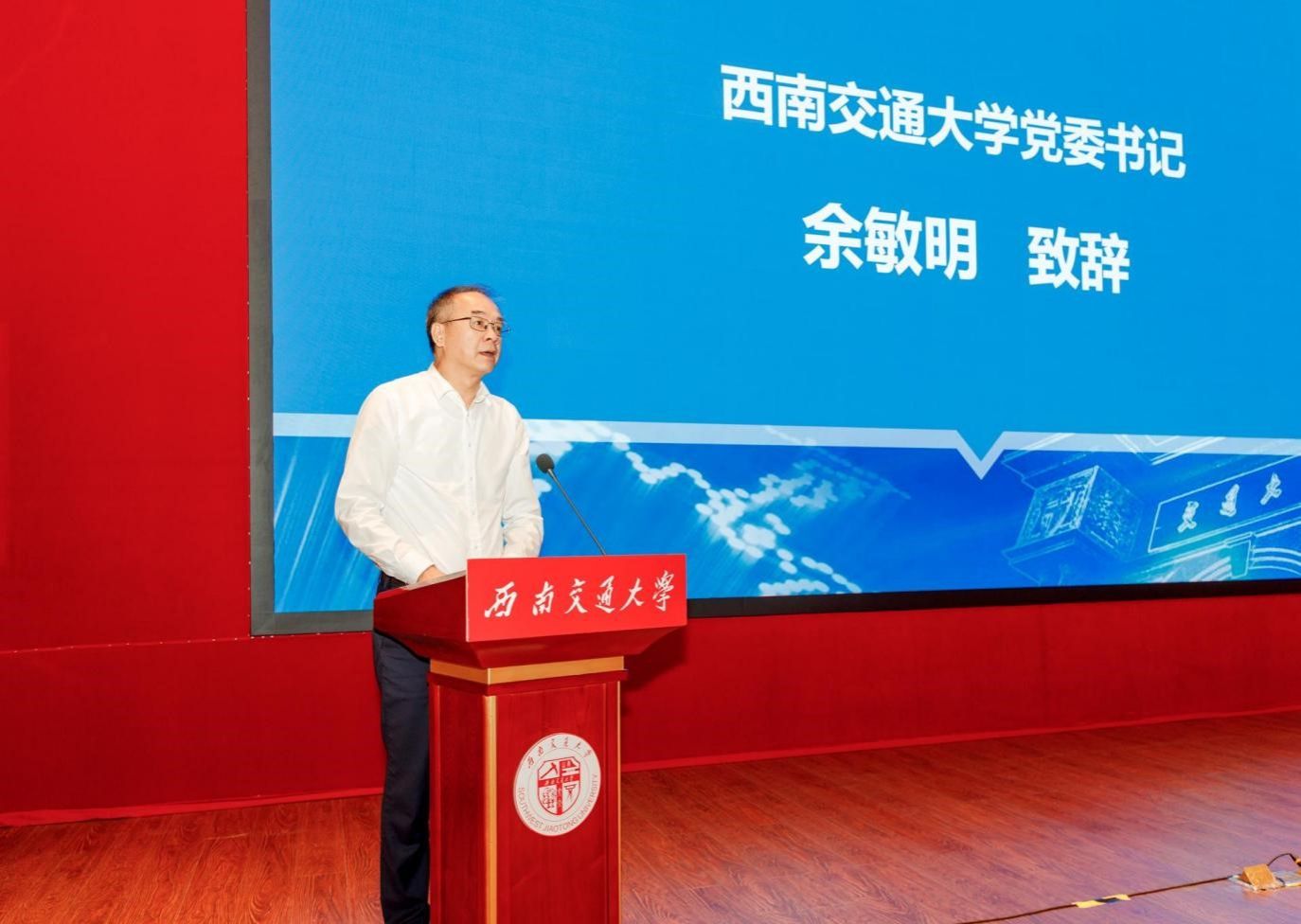 At the meeting, the unveiling ceremony of the Scientist Spirit Education Base of SWJTU’s Contribution to Strengthening China of Southwest Jiaotong University was launched. In May 2023, the “Scientist Spirit Education Base of SWJTU’s Contribution to Strengthening China” initiated by the School of Marxism of Southwest Jiaotong University was successfully jointly recognized by the 7 ministries and commissions including the China Association for Science and Technology, the Ministry of Education, the Ministry of Science and Technology, the State-Owned Assets Supervision and Administration Commission of the State Council, the Chinese Academy of Sciences, the Chinese Academy of Engineering, and the State Administration of Science, Technology, and Industry of National Defense. As an important achievement in the construction of Marxist theory disciplines of Southwest Jiaotong University, the base is another crucial carrier for our University to seriously carry out ideological and political education and deeply practice “educating talents for the Party and the country”. On behalf of the Sichuan Association for Science and Technology, Li Mei read out the identification document of the Scientist Spirit Education Base. Amidst warm applause, Yu Minming, Yang Jianguo, Liang Gang, and Li Mei jointly unveiled the base. Afterwards, the launching ceremony of the official website and WeChat Official Account “Sichuan Patriotic Chain” of the Ministry of Education’s Ideological and Political Theory Course Integration Community among Universities, Middle Schools, and Primary Schools (Sichuan) was held.