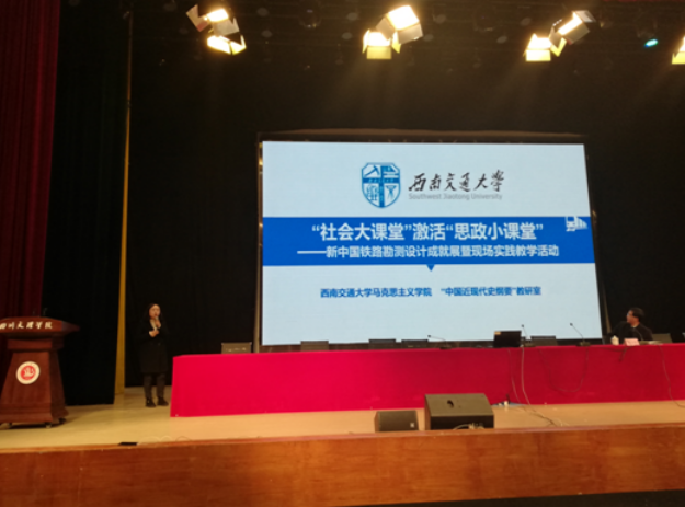 On the afternoon of November 29, four excellent teachers from Southwest Jiaotong University, Southwestern University of Finance and Economics, Chengdu Sport University and Mianyang Normal University put on a teaching demonstration. The teaching demonstration of Why China Takes the Socialist Path—Taking the Chengdu-Chongqing Railway as an Example”, presented by Associate Professor Wang Peng of the School, was highly praised by the experts, teachers and students present. Representatives from Southwest Jiaotong University, Sichuan University of Arts and Science and Leshan Normal University then share their insight in related issues. Diao Chenglin, a teacher of the School, presented an on-site practical teaching activity themed Activating the Small Classroom of Ideological and Political Courses with the Society—the Exhibition of Achievements in Railway Investigation and Design of the PRC, and showcases to the universities inside and outside Sichuan how the Teaching and Research Section of Chinese Modern History of the School leverages SWJTU’s strengths in the railway industry. Diao used the history of a dozen of unique railways as an example, such as Chengdu-Chongqing Railway, Chengdu-Kunming Railway, Qinghai-Tibet Railway and TAZARA Railway, and elaborated the systemic factors that contributed to the remarkable achievements of railway construction in the PRC with huge informative historical data and profound interpretations. Her demonstration is an excellent example of the efforts to promote the reform and innovation of ideological and political theory courses, and enhance the ideological and theoretical quality, affinity and pertinence of ideological and political courses, which was highly appreciated by the teachers and students present and received their unanimous praise.