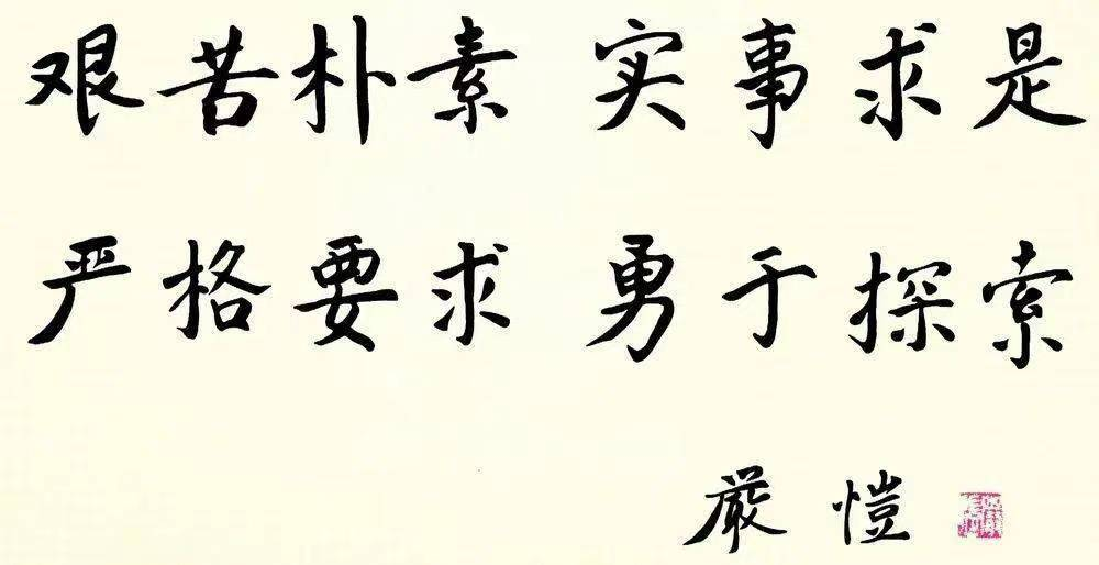 (今河海大学)。“十六字”校训“艰苦朴素、实事求是、严格要求、勇于探索”体现出优良校风。谈到在新形势下如何弘扬河海大学优良校风,严恺说道:“‘十六字’校训是我几十年来从事教育工作,特别是在河海大学的工作实践中所体会出来的办好大学、培养合格人才的指导思想和办学经验,也是我个人的座右铭。”当前在改革开放走向社会主义市场经济的新形势下,‘十六字’校训更有它特殊的意义。面对社会上出现的一些腐败思想和不良现象,例如拜金主义、享乐主义、缺乏崇尚知识、崇尚文明的风气、不求进取、纪律松弛等,必须加强社会主义精神文明建设,采取有效措施,加强对青年的思想道德教育,弘扬‘十六字’校训传统,培养‘四有’新人。