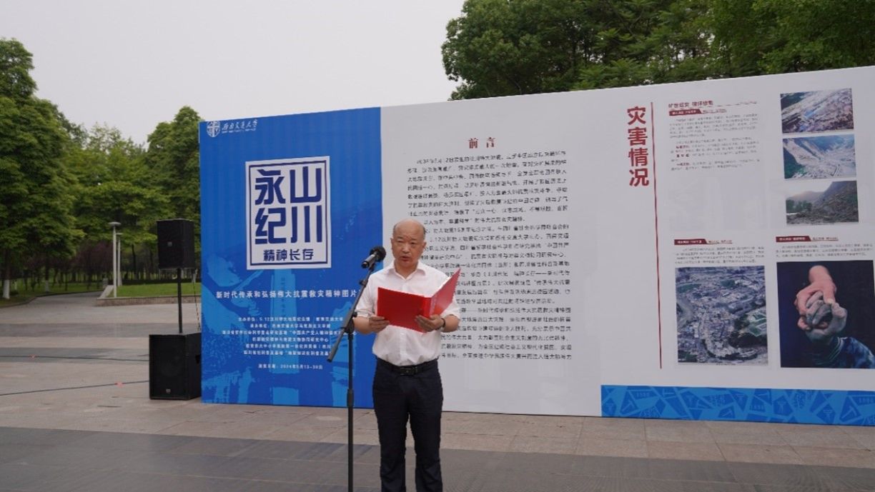 最后,田永秀总结指出,在全国上下学习贯彻“习近平对学校思政课建设作出重要指示”之际,根据《教育部办公厅关于组织高校与大思政课实践教学基地结对行动的通知》精神和要求,在四川省社会科学界联合会的指导下,我们同5.12汶川特大地震纪念馆共同举办“新时代传承和弘扬伟大抗震救灾精神图片展”,把纪念馆的优质精品资源引进校园,将汶川特大地震抗震救灾和灾后重建的举世瞩目成就作为我们思政大课堂的内容支撑,将其熔铸形成的伟大抗震救灾精神作为我们思政大课堂的力量根基,将会进一步提升思政课的针对性和吸引力。