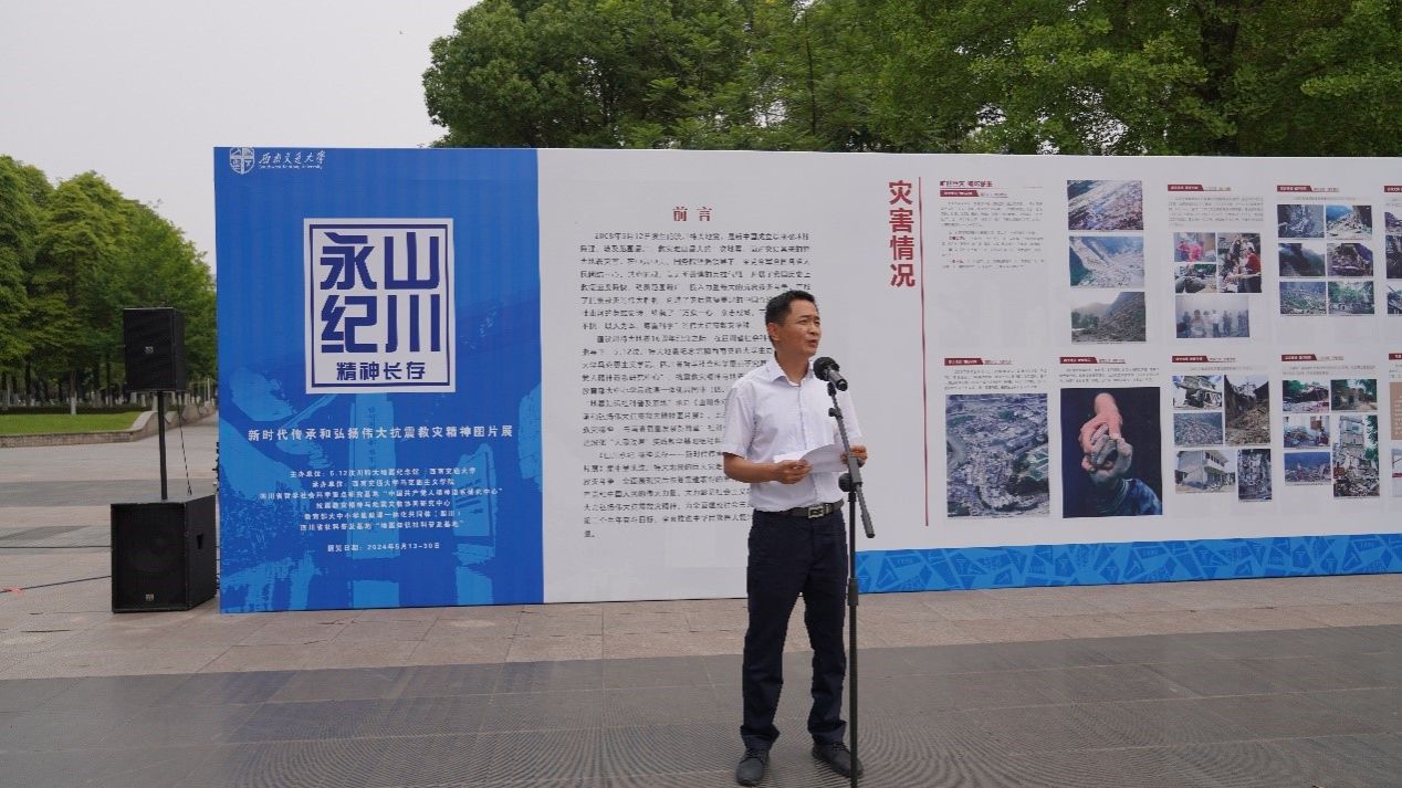 《山川永纪 精神永存——新时代传承和弘扬伟大抗震救灾精神图片展》是在四川省社会科学界联合会的指导下,5·12汶川特大地震纪念馆和西南交通大学主办,澳门六合彩开奖结果现场直播网站 、四川省哲学社会科学重点研究基地“中国共产党人精神谱系研究中心”、抗震救灾精神与地震文物协同研究中心、教育部大中小学思政课一体化共同体(四川)承办的展览。此次展览既是四川省社会科学界“传承伟大抗震救灾精神 书写高质量发展新篇章”科学普及活动周进校园活动,也是深化“大思政课”实践教学基地结对共建的场馆进校园活动。