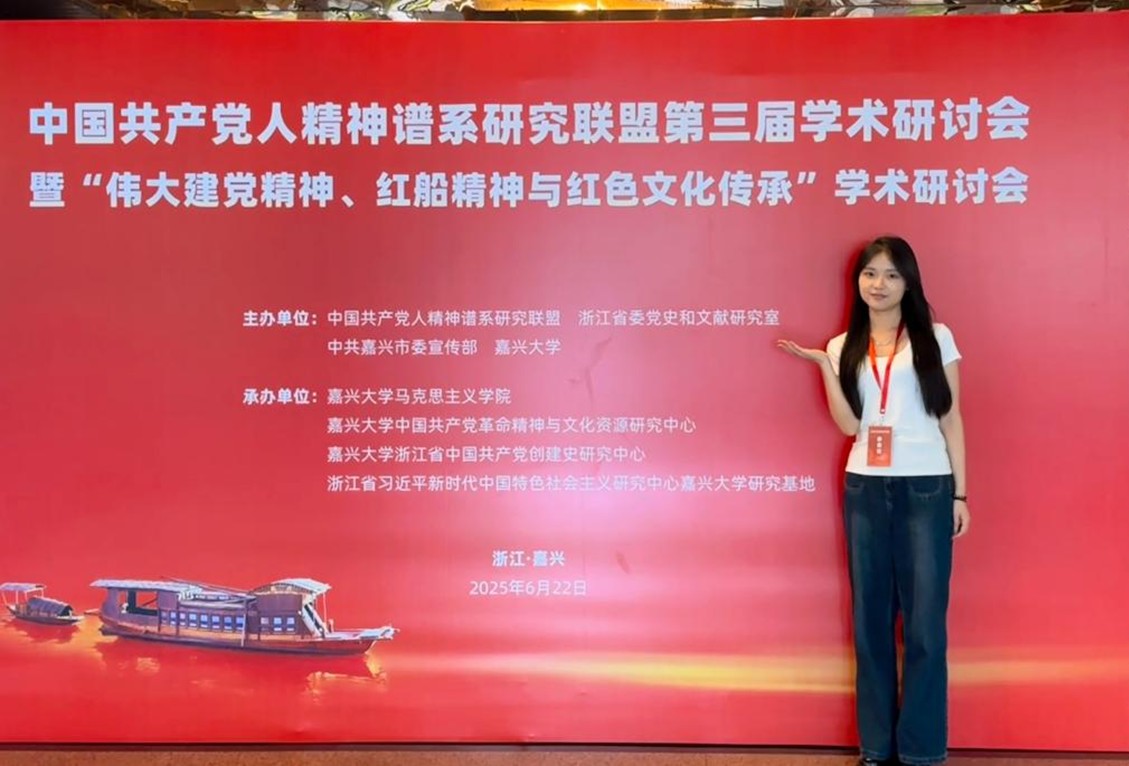 2025年6月22日,中国共产党人精神谱系研究联盟第三届学术研讨会暨“伟大建党精神、红船精神与红色文化传承”学术研讨会在嘉兴大学举行。中心田永秀教授、胡子祥教授及2023级硕士研究生王佩、2024级硕士研究生汤茜受邀参加本次学术研讨会。