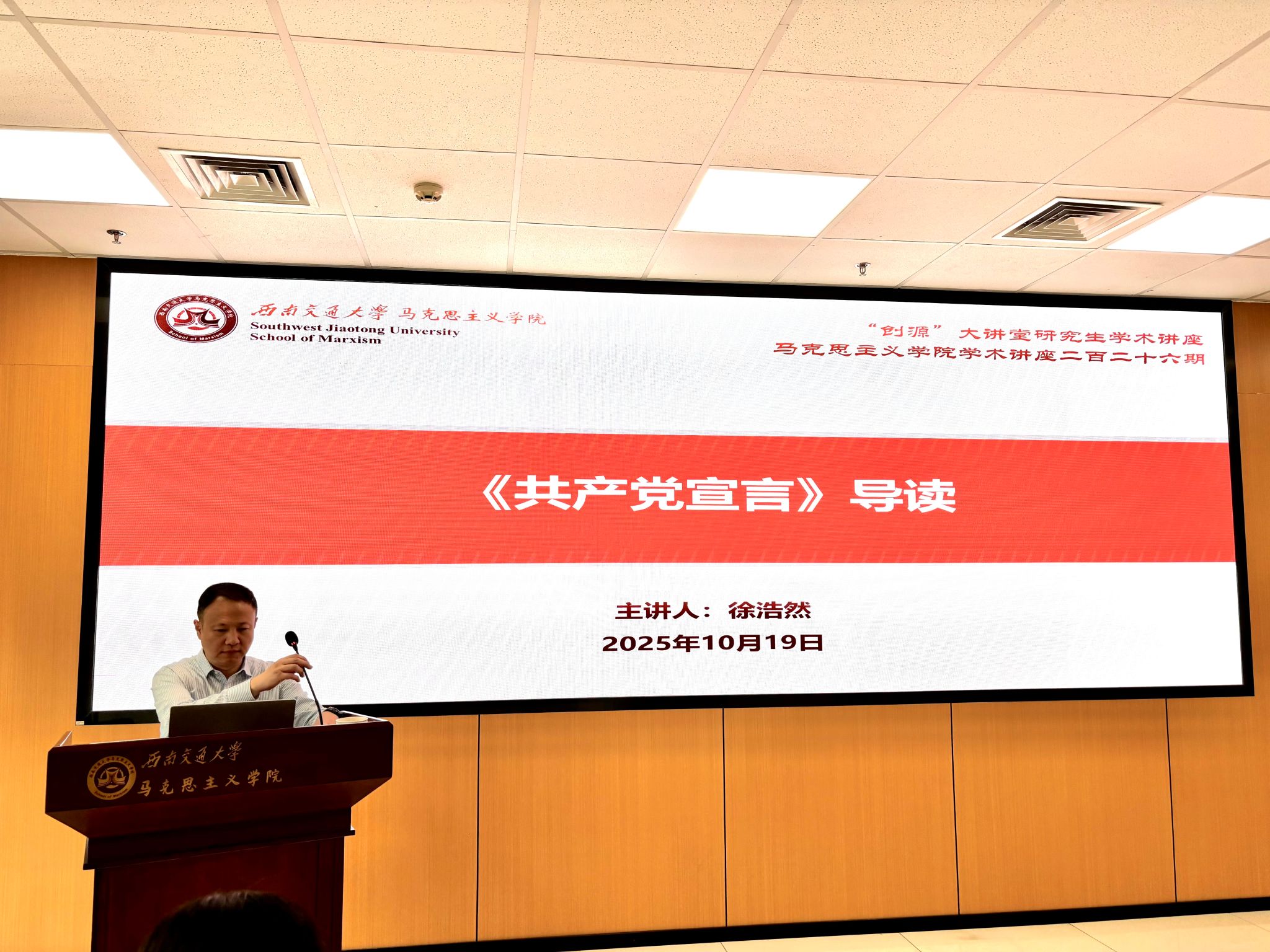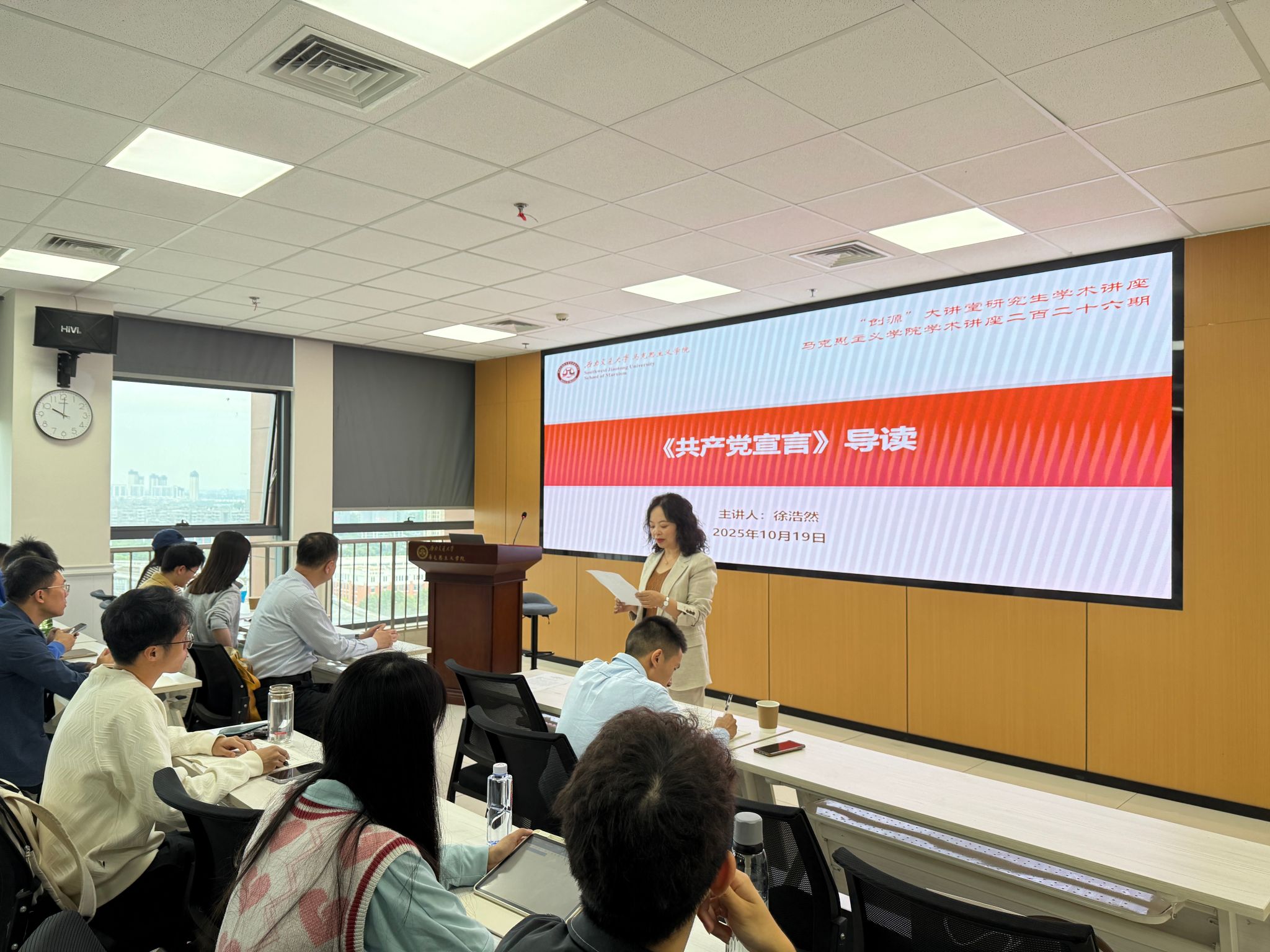 )科学社会主义教研部博士生导师、社会主义发展史教研室主任徐浩然教授为我院的硕士、博士研究生带来了一场以《共产党宣言》导读为主题的专题讲座。讲座由澳门六合彩开奖结果现场直播网站